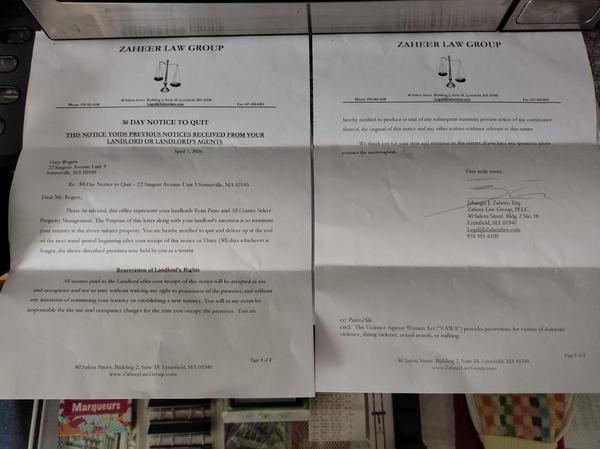 Cambridge Day • April 11th, 2026 Rogers served notice, says "I'm a fighter" A Somerville man who last week avoided eviction by winning a lawsuit against his landlord was served a new notice to quit.
